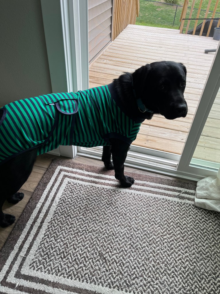 We celebrated gotcha day with ice cream at home because I was recovering from what mom calls “man surgery”. They took two of my man parts but I am doing well. I had a green and black stripe surgical suit and an inflatable donut to wear as I recovered (no cone of shame!). As of Saturday, I can run and jump and be myself again!